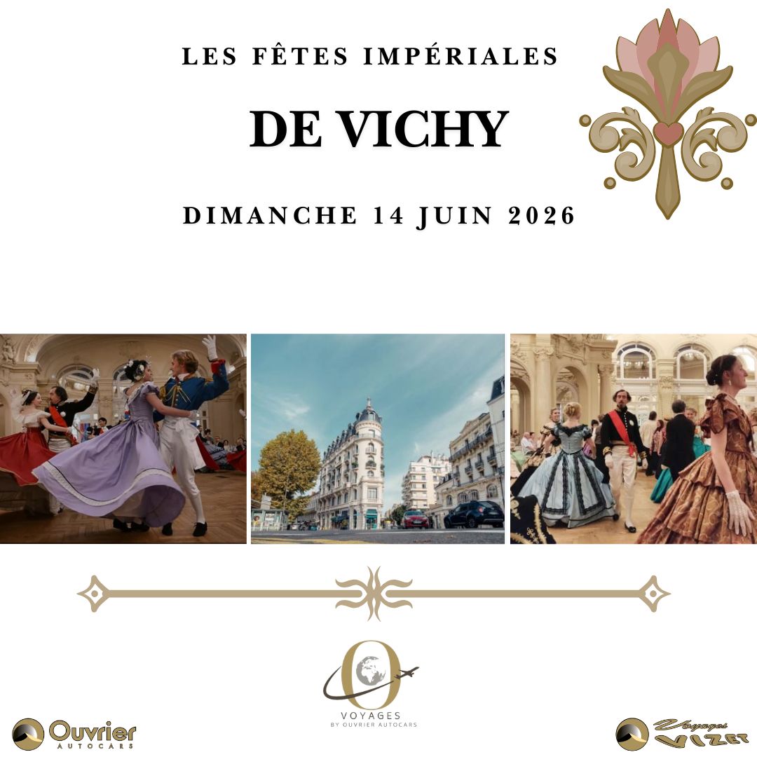 Les Fêtes Impériales de Vichy Dimanche 14 Juin 2026 Une journée festive rythmée de danse, musique, théâtre, en l’honneur de sa majesté l’Empereur en personne. L’occasion aussi de découvrir le nouveau coeur de ville de Vichy entièrement rénové !!